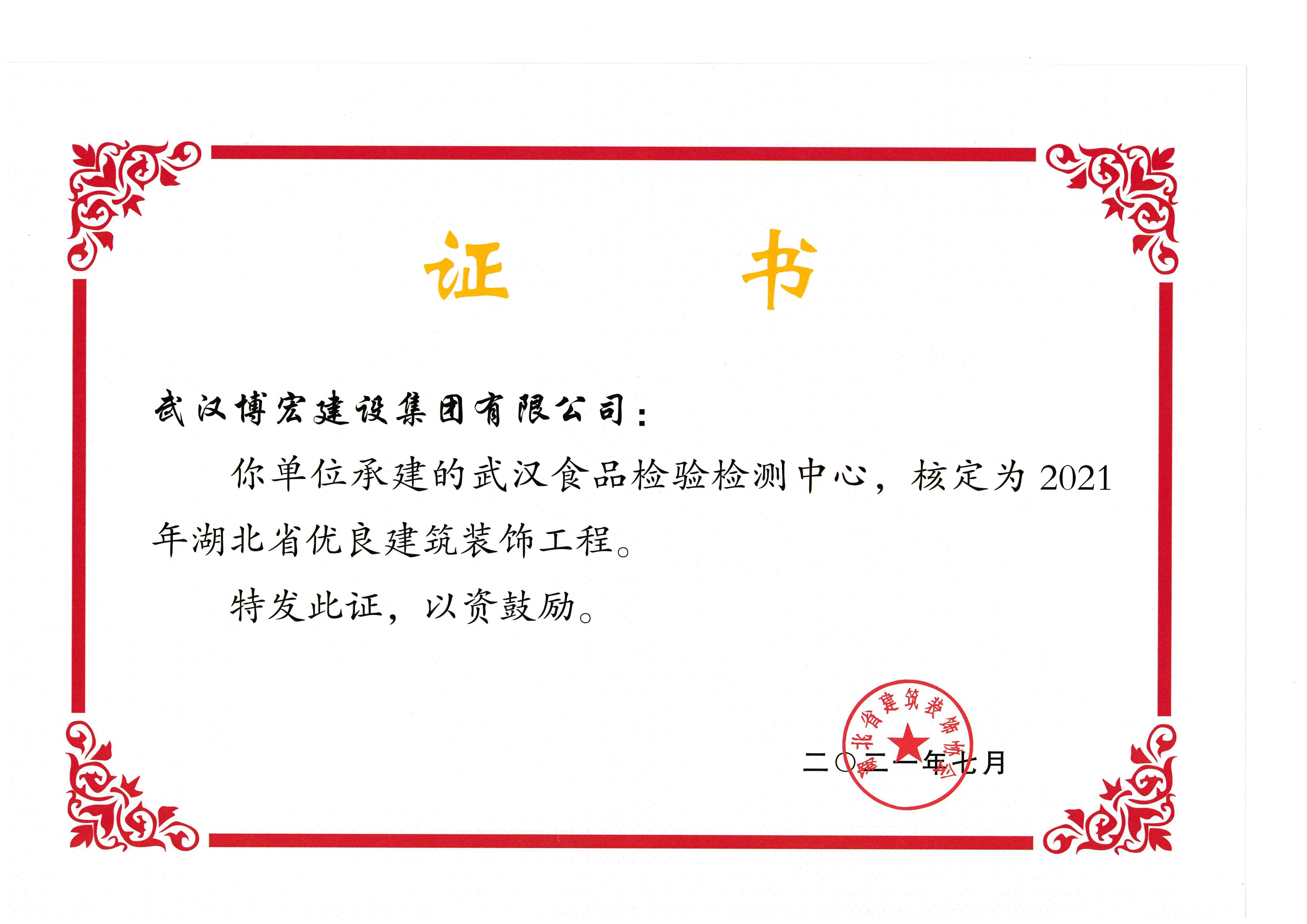 2021年度湖北省優(yōu)良建筑裝飾工程(食檢中心)